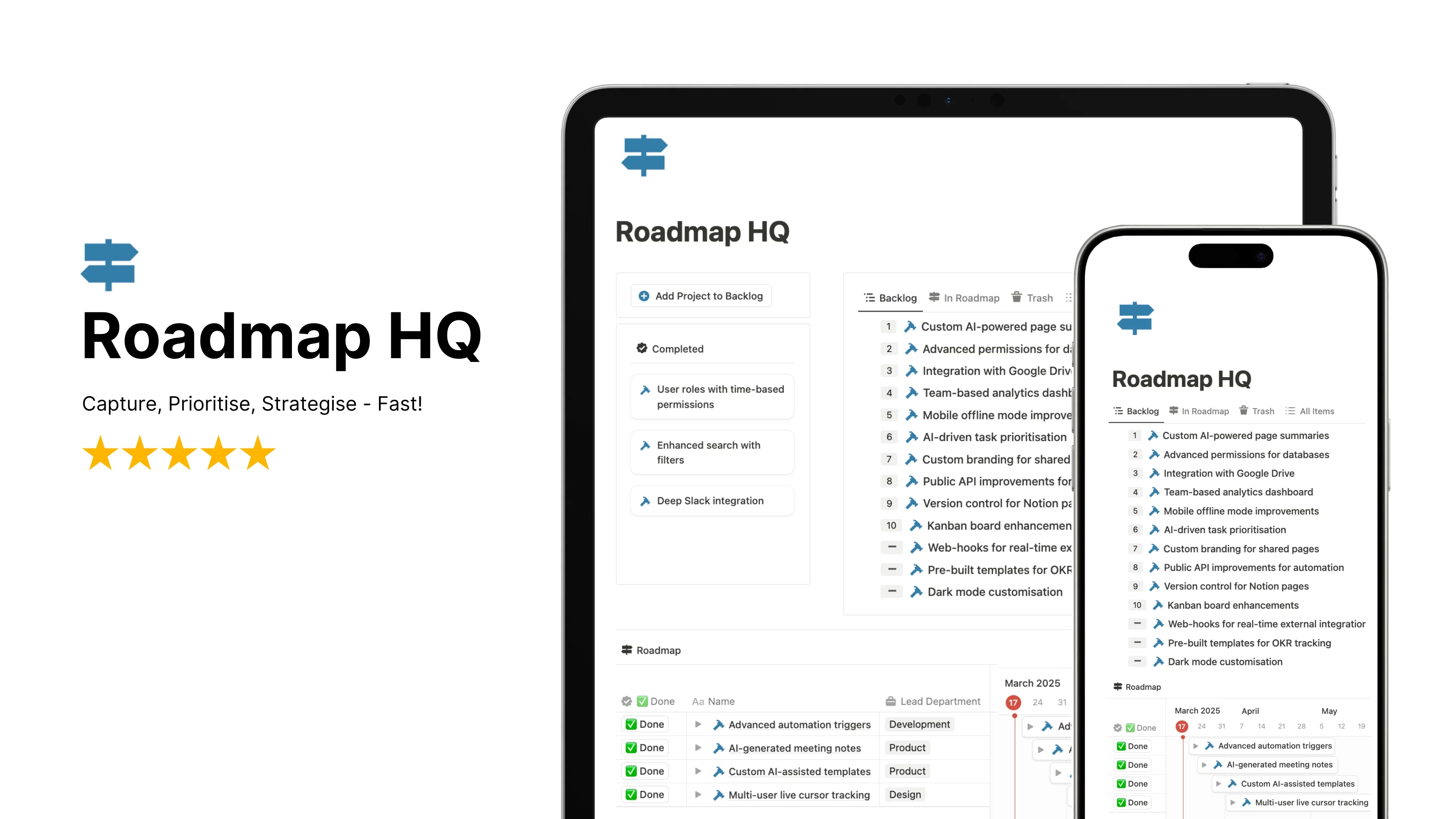 Roadmap HQ comes with Quick Action buttons, a Backlog Analyzer, a Dynamic Roadmap Workflow, and much much more...